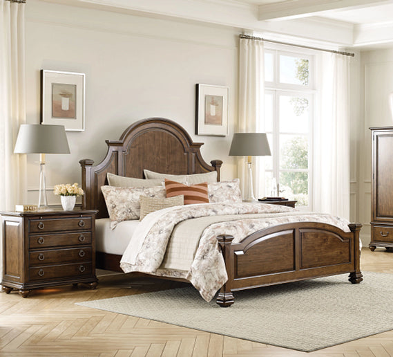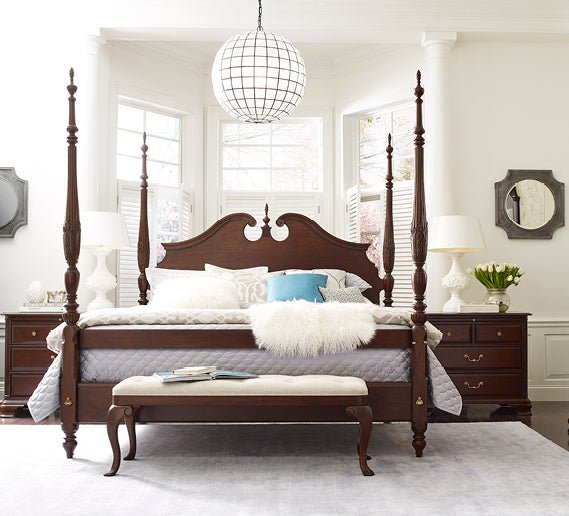 Like the classic tuxedo, Hadleigh establishes a sense of timeless refinement. The collection is crafted with hand selected, solid wild black cherry from the Allegany mountains with a finish that showcases the natural beauty of this sought after lumber. Within the collection is a balanced blend of the 18th Century classics with modern touches for an updated look. Intricate dental mouldings, reeded posts, bead-framed drawers and subtle hand carvings speak to the tireless focus of the individual artisans. Meanwhile, a nod toward modern style comes from design cues like the brushed gold tone hardware and textured fabric touches. Hadleigh combines the best features of new furniture technology with the authentic benefits of solid wood furniture in an heirloom-quality construction. Notable elements include the Kincaid Soft-Close drawer glide system. Kincaid also utilizes the best of the old-world construction techniques such as English dovetails, mortise and tenon construction, floating tops and panels, full dust proofing, and multi-step hand-rubbed finishes.