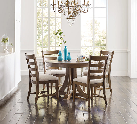 The headquarters of the home is most often found around the breakfast tables and casual dining spaces of today’s families. It is a place where a broad range of family events are shared, from the stress of homework to the celebration of holidays. The Kafe casual dining collection was designed to meet the demands of such a space. Kafe from Kincaid Furniture is a casual dining solution that builds on the family-friendly benefits of solid wood construction and the KinGuard performance finish. Additionally, it is available with a range of flexible options to fit most any kitchen dining space: