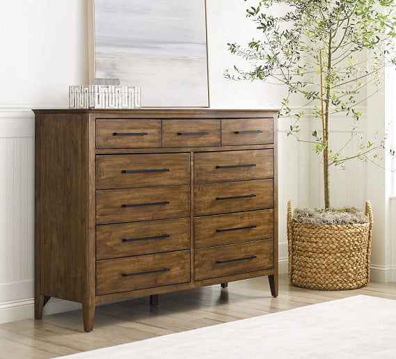 The collection features a casual, organic style that blends modern and vintage design influences with the natural character of solid wood furniture. Two finish choices are available across the assortment: