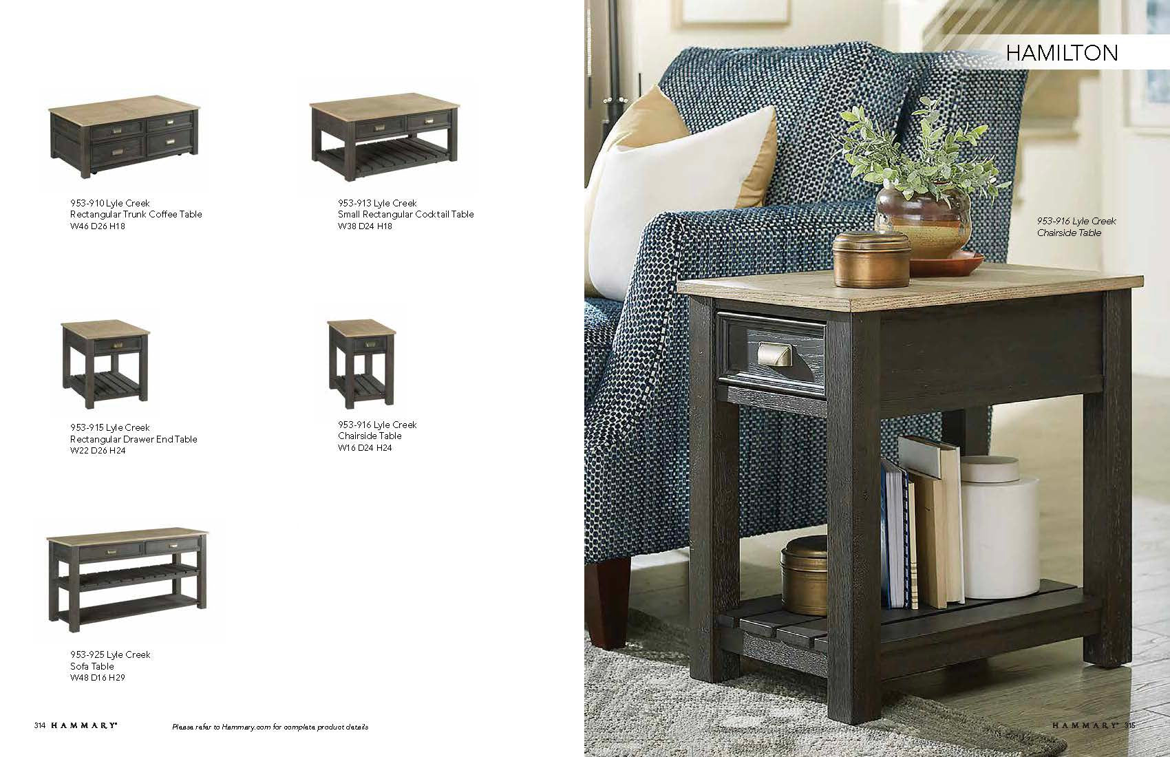 Lyle Creek-Hamilton by Hammary blends everyday function with warm, livable design—made to mix seamlessly with today’s transitional and modern spaces. Thoughtful details like practical storage, scale that suits real homes, and durable finishes make these pieces easy to live with. Use it as a complete room solution or mix individual tables with your current favorites for a layered, custom look.