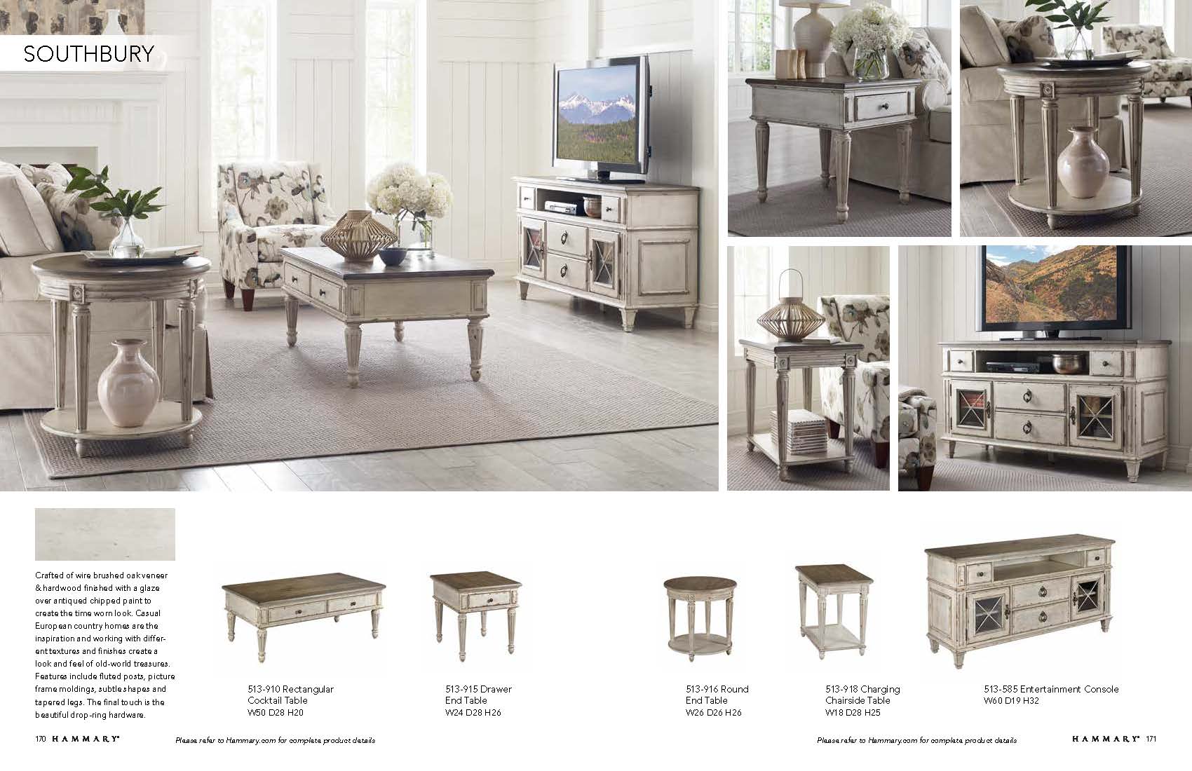 Southbury by Hammary delivers a versatile, designer-curated look with silhouettes that play well across a range of interiors. Smart proportions, useful storage options, and durable finishes make this collection as practical as it is stylish. Style it as a coordinated group or mix individual pieces into your existing setting for an instant refresh.