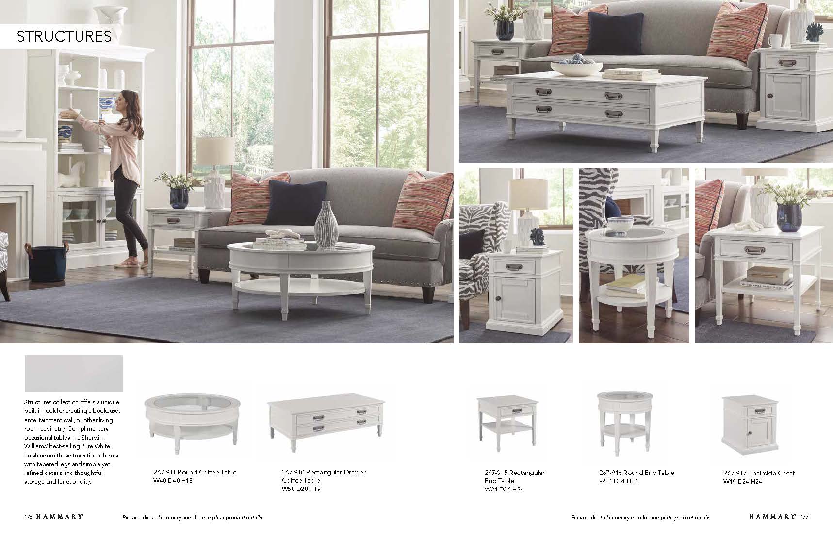 Structures by Hammary delivers a versatile, designer-curated look with silhouettes that play well across a range of interiors. Designed for real life, pieces feature smart storage, livable finishes, and sizes that fit beautifully in everyday rooms. Use it as a complete room solution or mix individual tables with your current favorites for a layered, custom look.