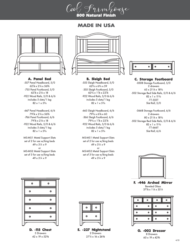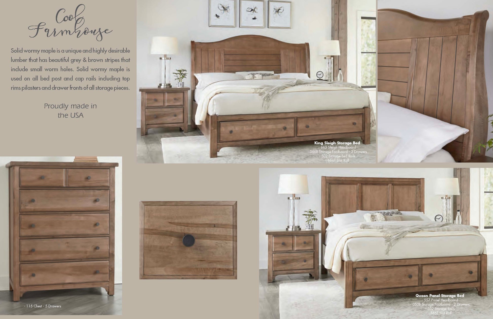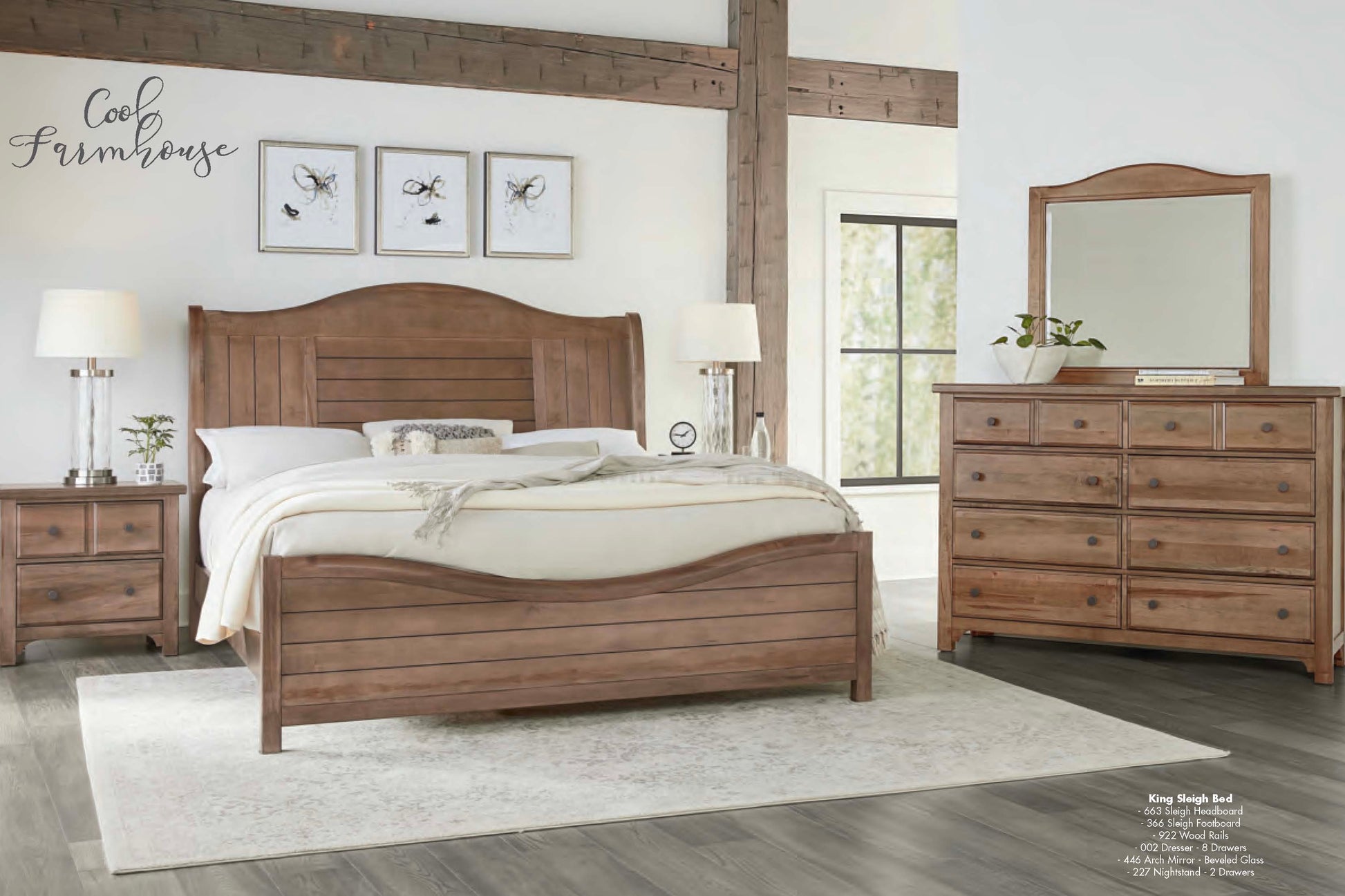 Vaughan-Bassett’s Cool Farmhouse collection blends relaxed farmhouse styling with clean, modern lines for a timeless bedroom look. Pieces like dressers, chests, nightstands, mirrors, and panel or sleigh beds come together in versatile finishes such as Natural CF, Grey CF, and Soft White CF to mix and match across any space. Proudly Made in the USA, the collection emphasizes sturdy construction and everyday durability from an American manufacturer known for quality and value.