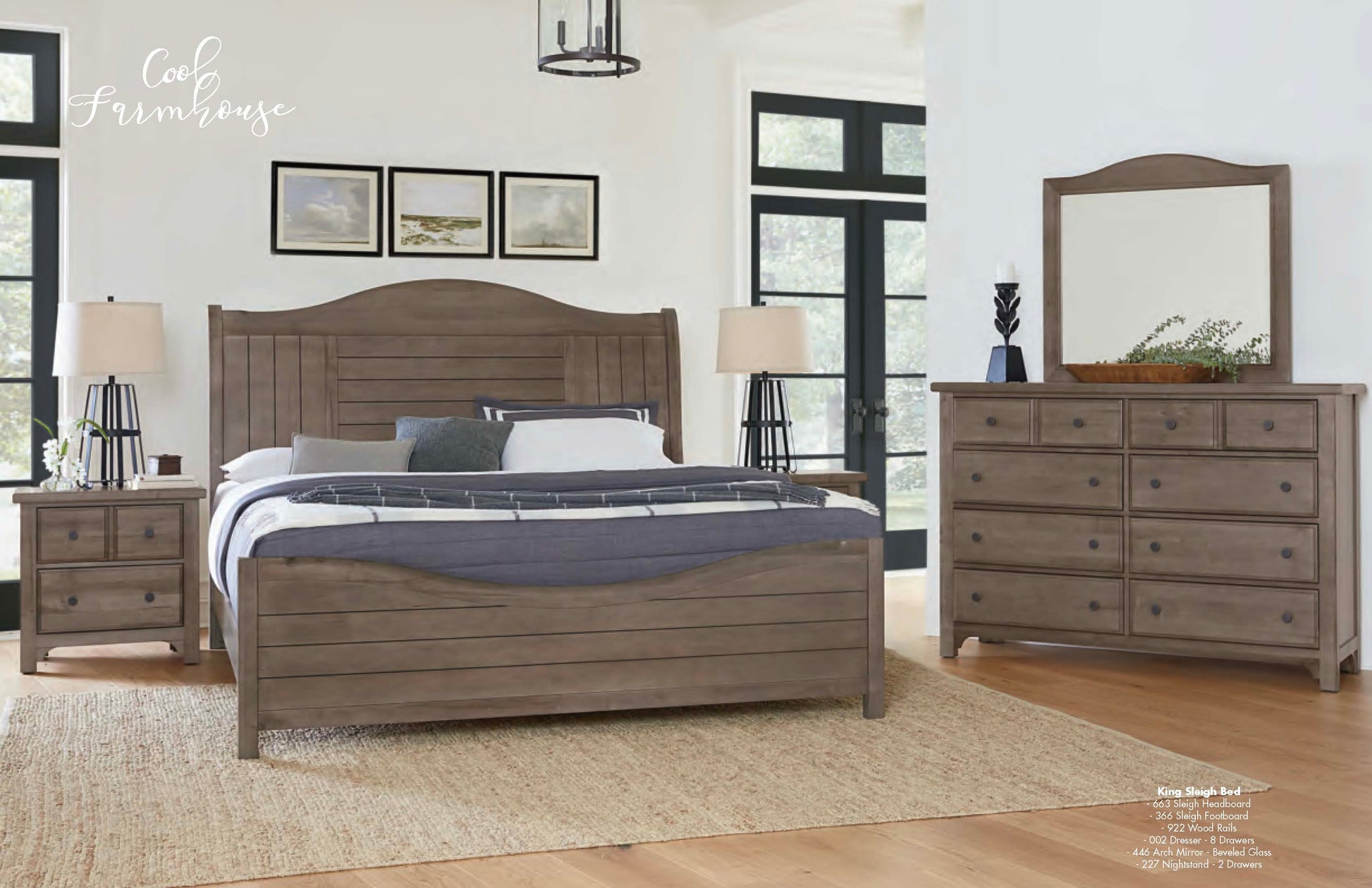 Vaughan-Bassett’s Cool Farmhouse collection blends relaxed farmhouse styling with clean, modern lines for a timeless bedroom look. Pieces like dressers, chests, nightstands, mirrors, and panel or sleigh beds come together in versatile finishes such as Natural CF, Grey CF, and Soft White CF to mix and match across any space. Proudly Made in the USA, the collection emphasizes sturdy construction and everyday durability from an American manufacturer known for quality and value.