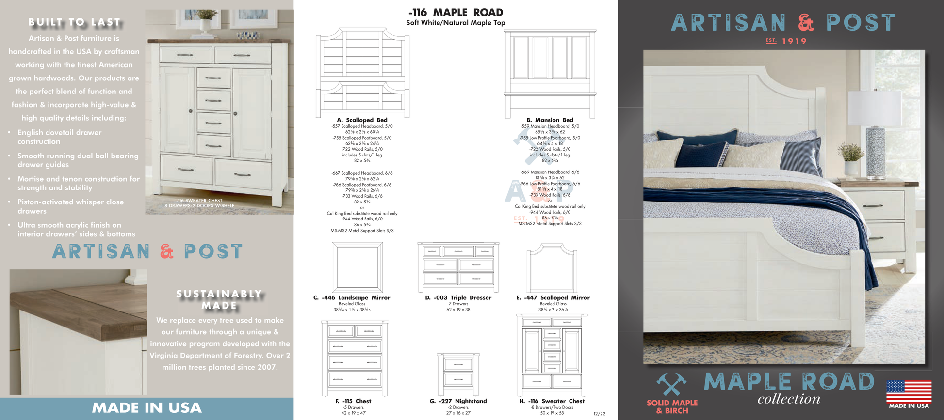 Vaughan-Bassett’s Maple Road celebrates the natural beauty and strength of maple with clean, timeless silhouettes designed for everyday living. The collection spans beds, dressers, chests, nightstands, and mirrors that mix easily across a range of warm, versatile finishes. Proudly Made in the USA, Maple Road is crafted for lasting quality and value—bringing classic, real-wood character to any bedroom.